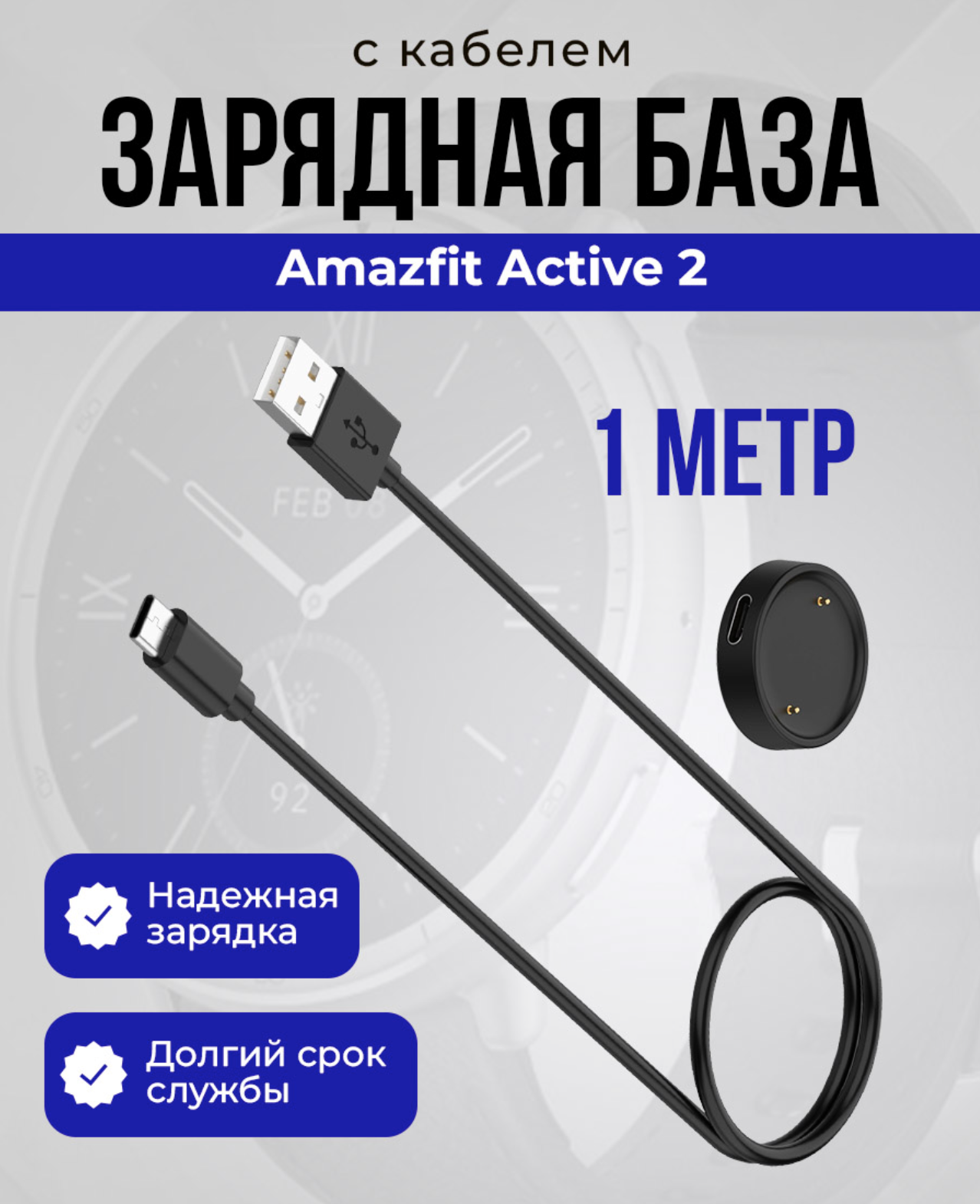 Представляем зарядную базу с кабелем для Amazfit Active 2 — незаменимый аксессуар для надежной и быстрой зарядки ваших спортивных часов. Эта высококачественная зарядная база специально разработана для модели Амазафит Актив 2, что гарантирует идеальную совместимость и легкость в использовании.
