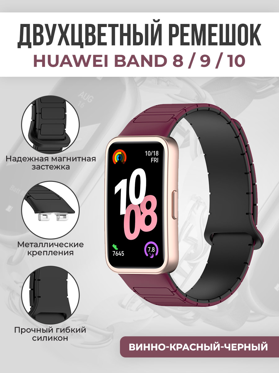 Двухцветный магнитный ремешок для Huawei Band 8/9/10, винно-красный-черный