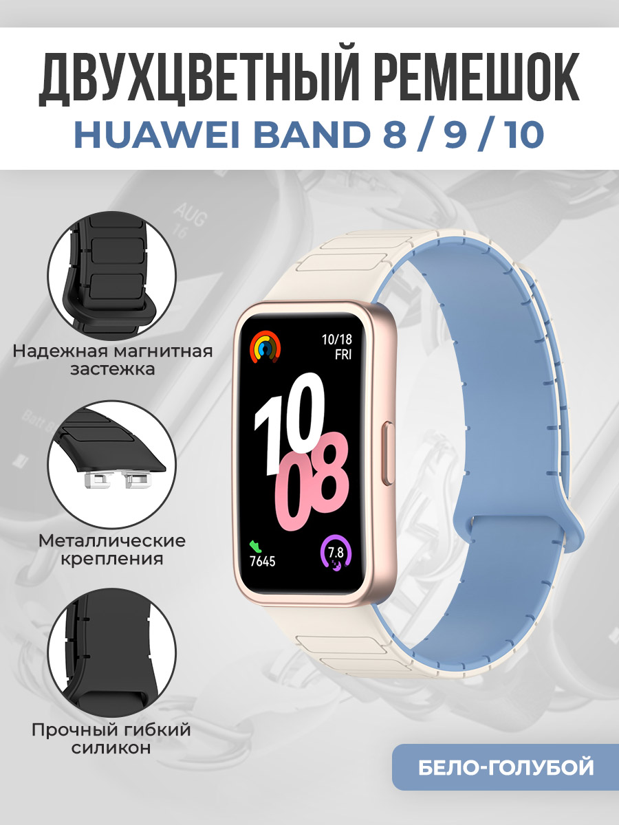 Двухцветный магнитный ремешок для Huawei Band 8/9/10, бело-голубой
