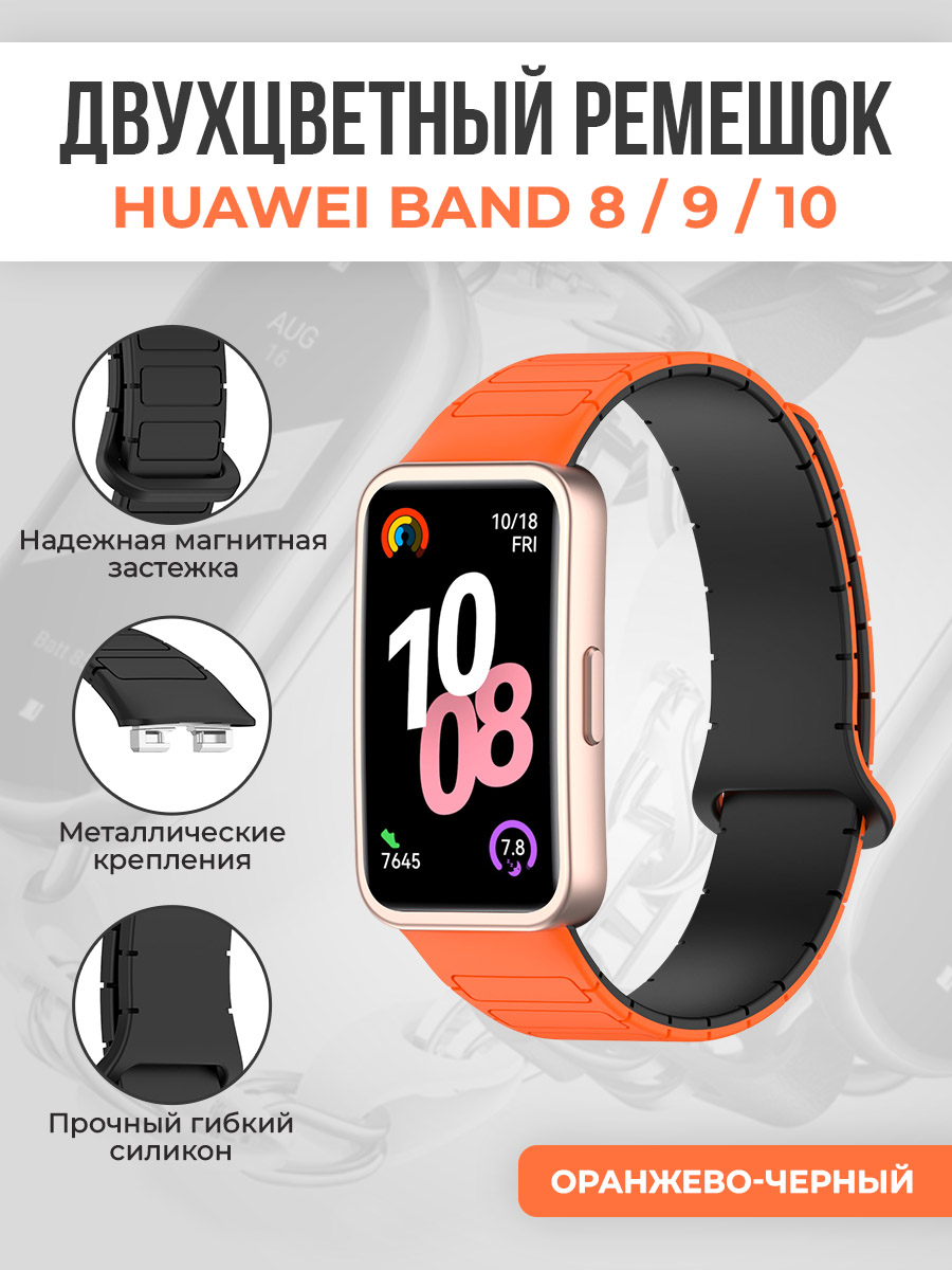 Двухцветный магнитный ремешок для Huawei Band 8/9/10, оранжево-черный