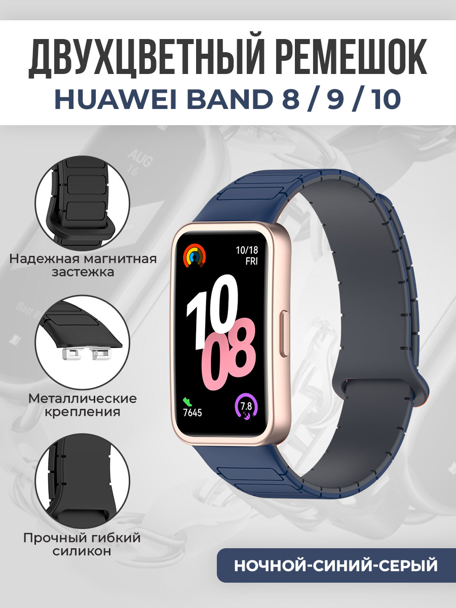 Двухцветный магнитный ремешок для Huawei Band 8/9/10, ночной-синий-серый