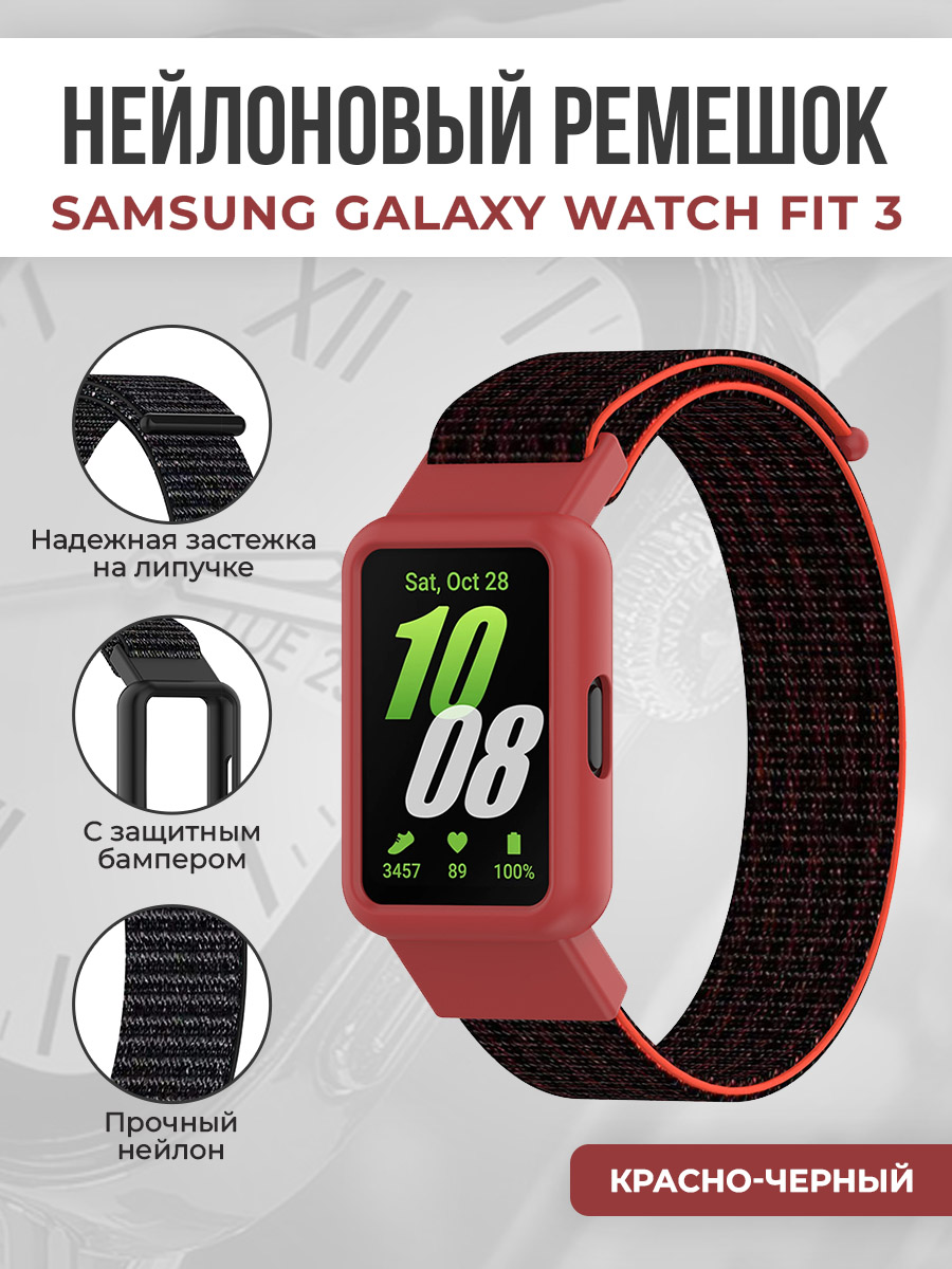 Нейлоновый ремешок на липучке с защитным чехлом для Samsung Galaxy Watch Fit 3, красно-черный