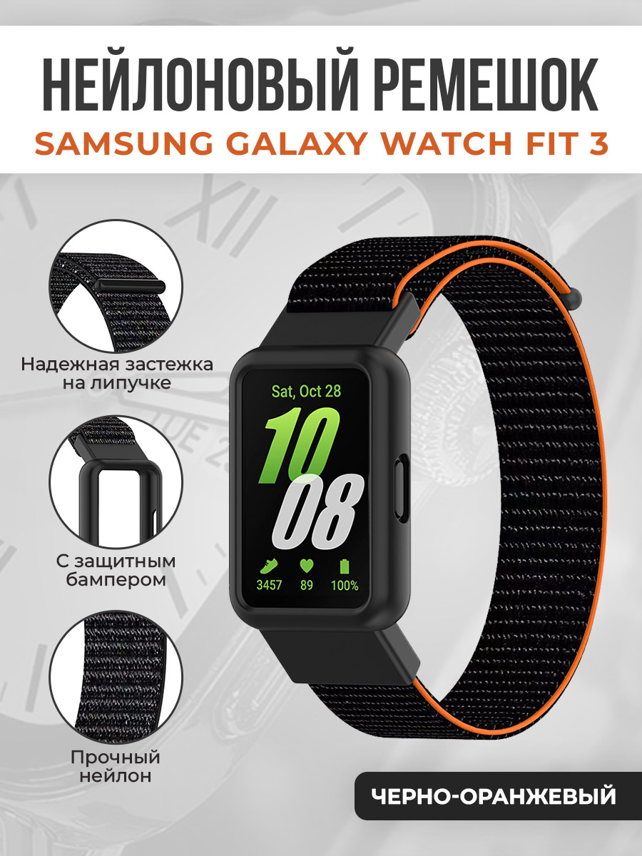 Нейлоновый ремешок на липучке с защитным чехлом для Samsung Galaxy Watch Fit 3, черно-оранжевый