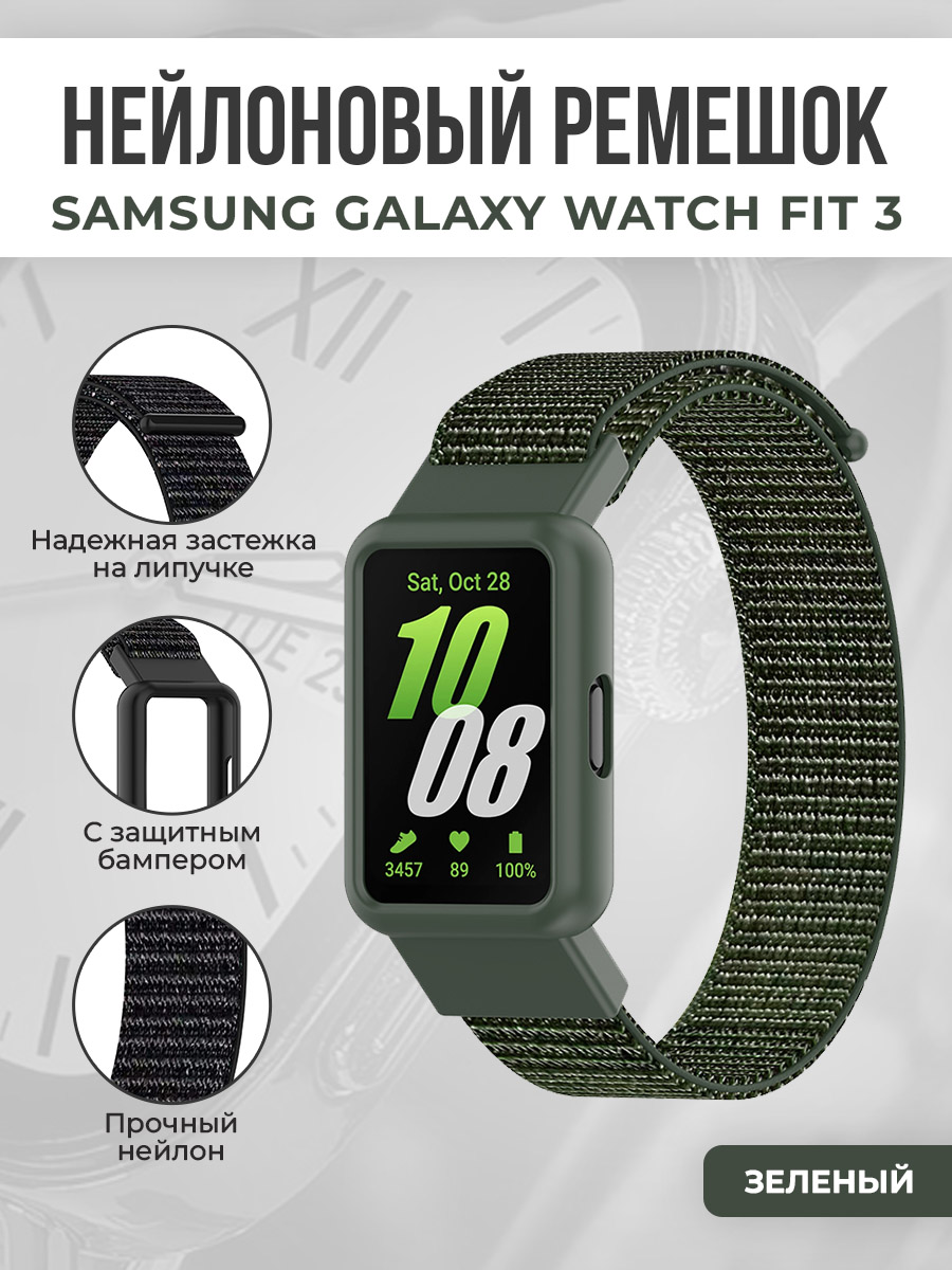 Нейлоновый ремешок на липучке с защитным чехлом для Samsung Galaxy Watch Fit 3, зеленый