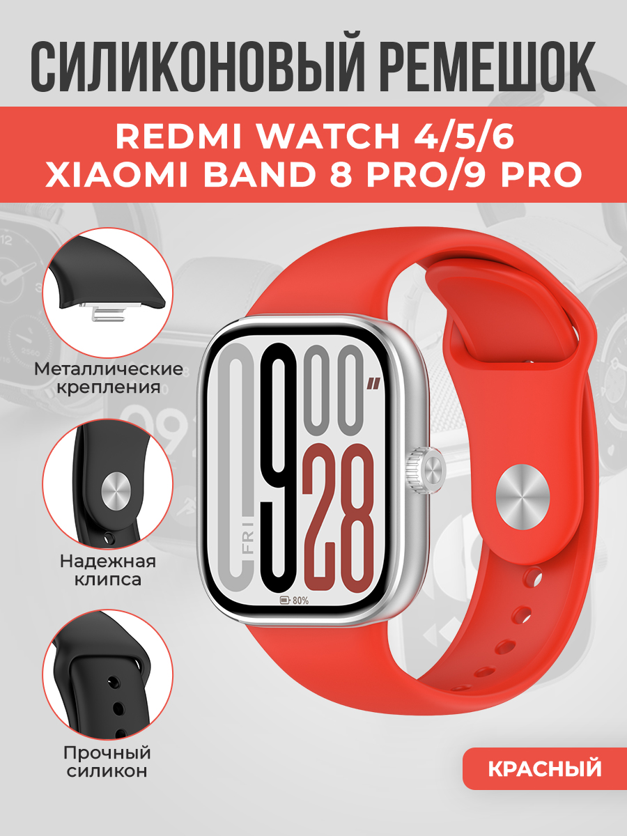 Силиконовый ремешок с клипсой для Redmi Watch 4/5/6/Xiaomi Band 8 Pro/9 Pro, красный