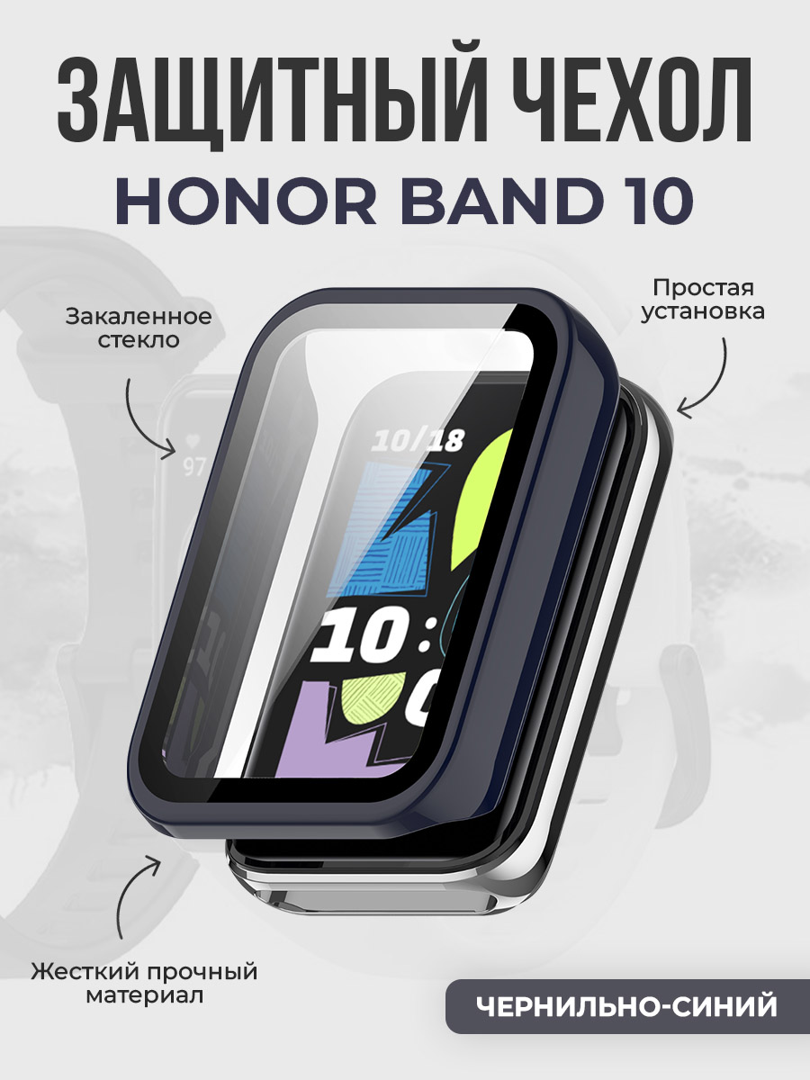 Жёсткий защитный чехол со стеклом для Honor Band 10, чернильно-синий
