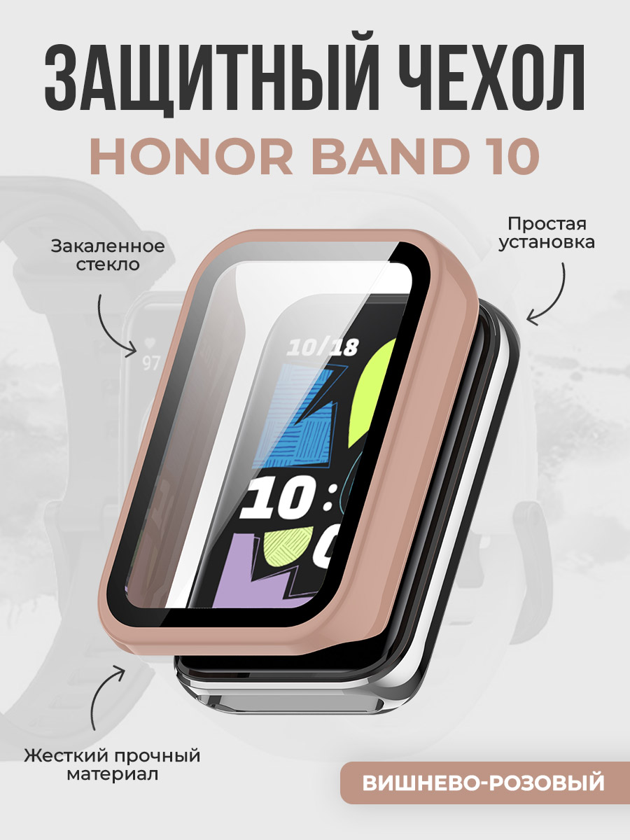 Жёсткий защитный чехол со стеклом для Honor Band 10, вишнево-розовый