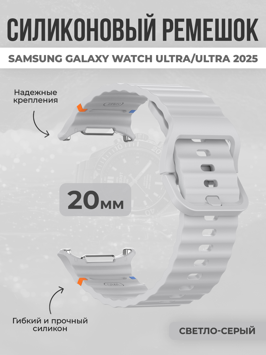 Силиконовый ремешок для Samsung Galaxy Watch Ultra/Ultra 2025, 47 мм, светло-серый